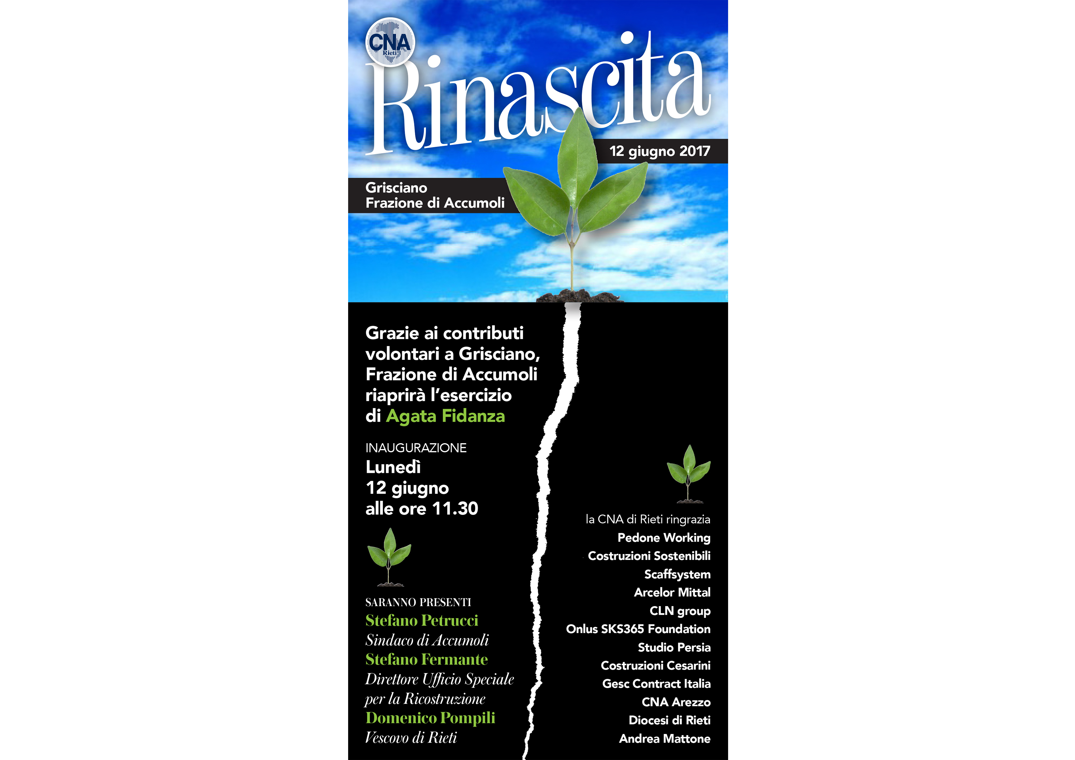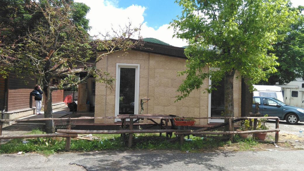 Grazie all’iniziativa della Confederazione Nazionale dell’Artigianato di Rieti è stato individuato sul territorio un progetto specifico capace di soddisfare le esigenze immediate del post-sisma. In Grisciano, frazione di Accumoli, con grande fatica era nuovamente operativo il bar del paese, punto di aggregazione sociale, luogo di confronto e reciproco conforto emotivo. Con rapidità ma anche con un altissimo standard qualitativo, era necessario disporre di uno spazio fisico riparato che fungesse da spaccio alimentare per soddisfare i primissimi bisogni di approvvigionamento.